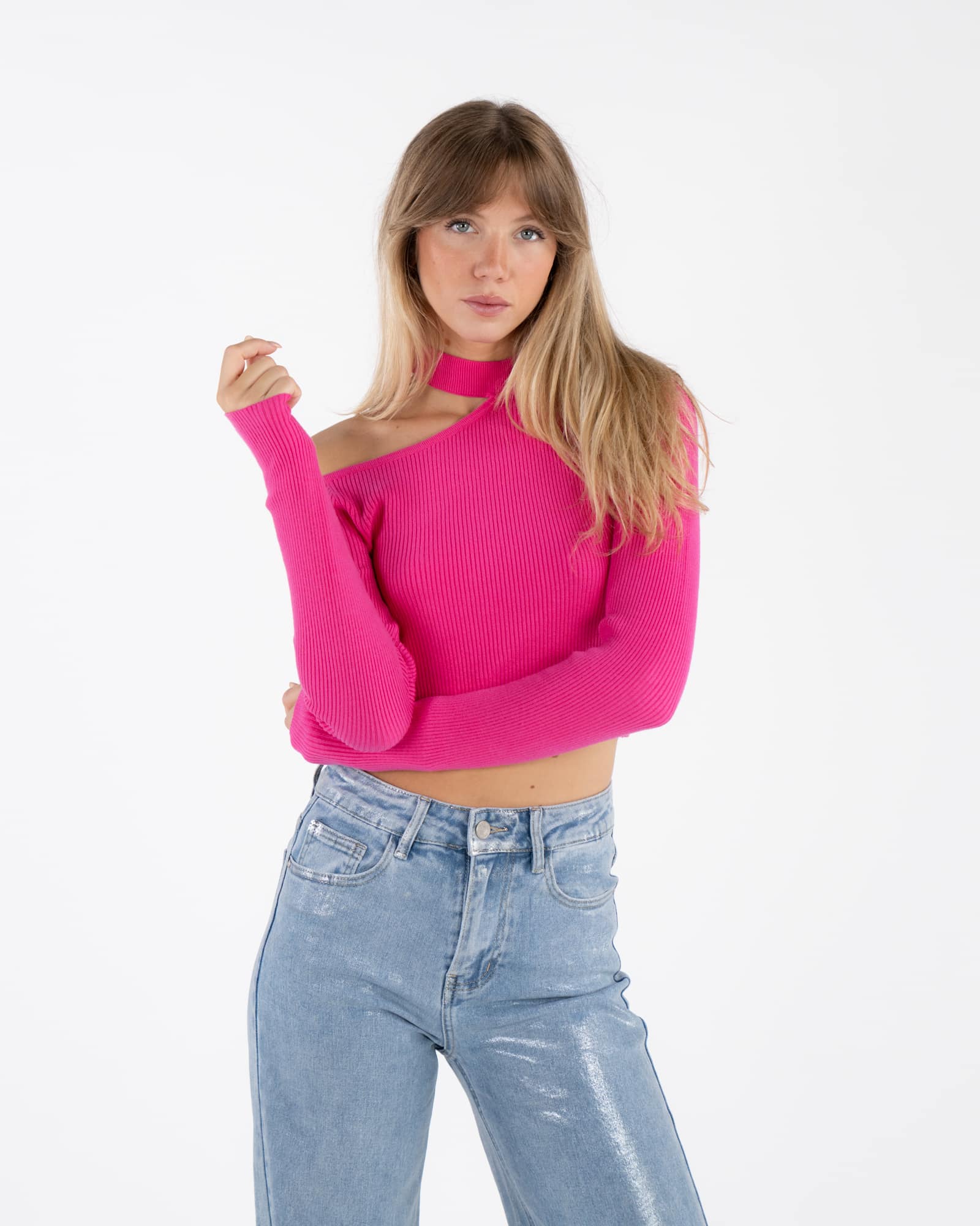 Dettaglio spalla scoperta con colletto..