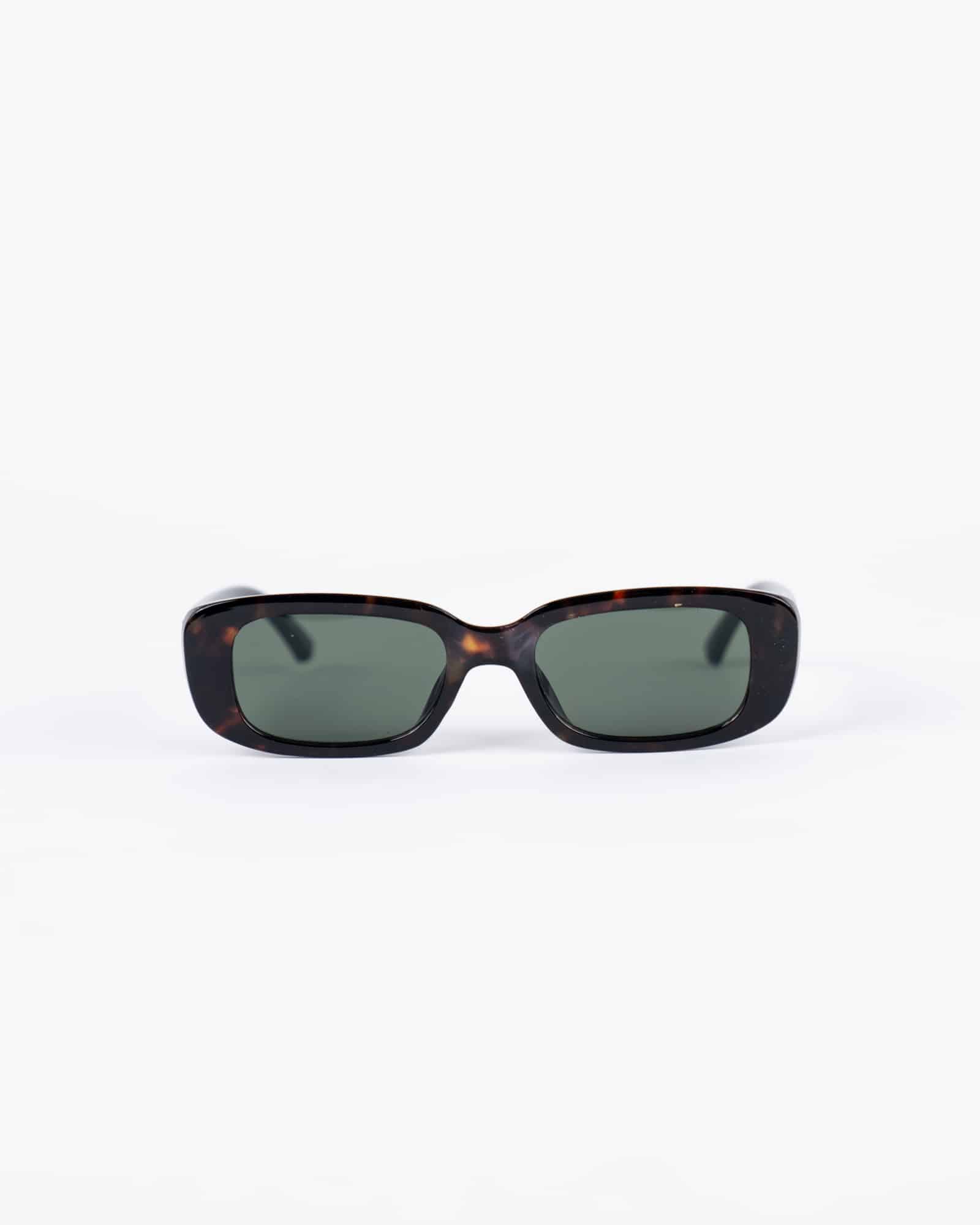 Occhiali da sole con montatura rettangolare sottile maculata.