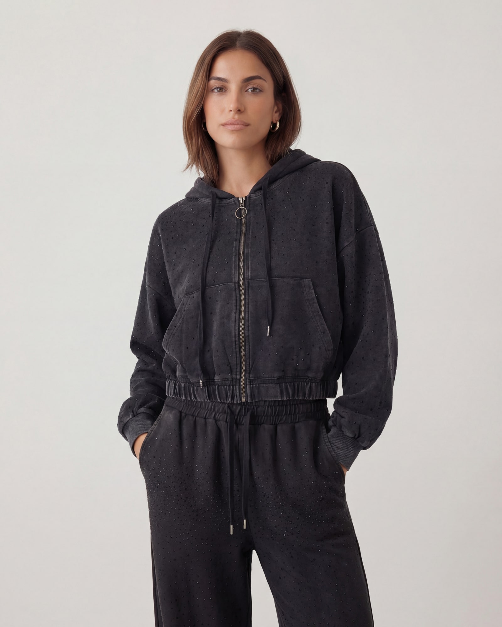 Pantalone da donna in felpa grigio garzato . Coulisse in vita ed elastico al fondo