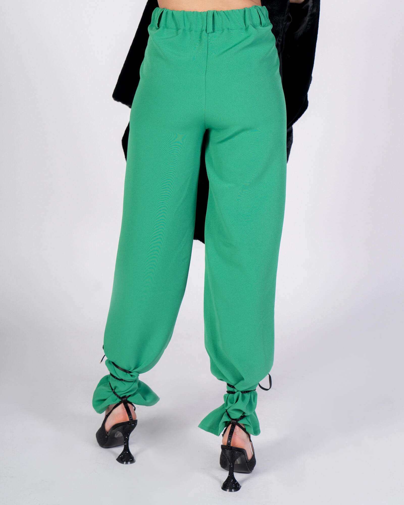 Pantaloni da donna a palazzo. Bottone a contrasto. Sono presenti passanti. Tasca taglio americano. L’elastico sul retro premette a questo pantalone di vestire più taglie.