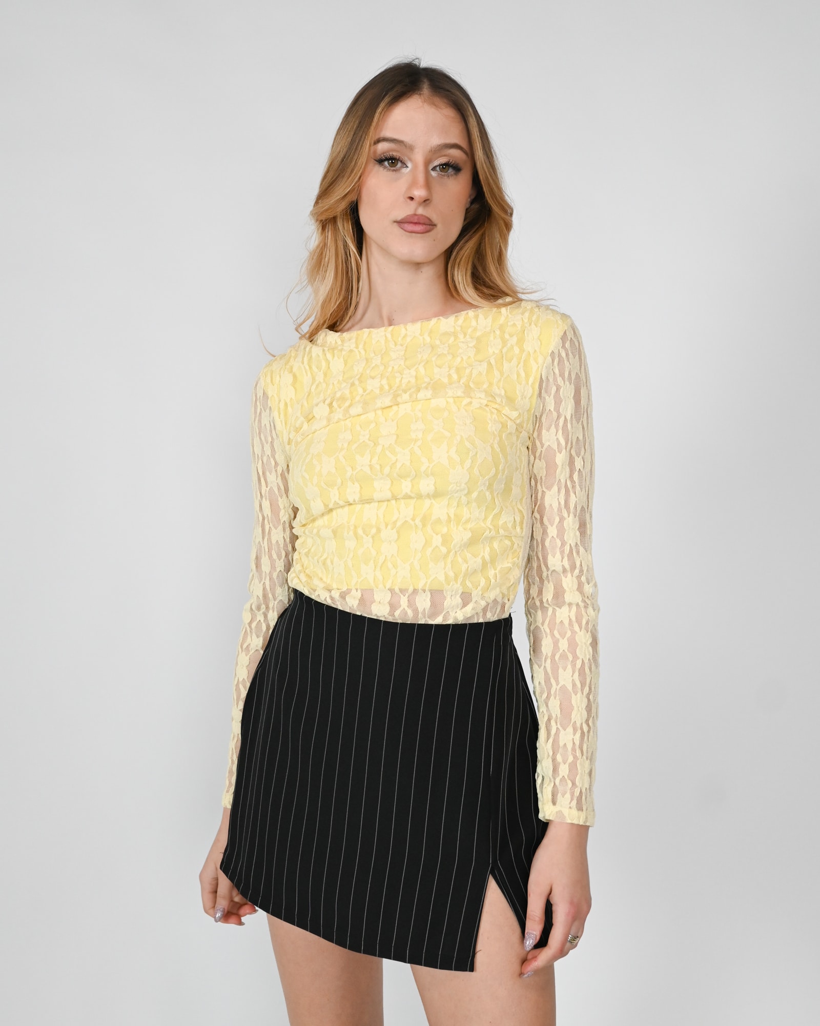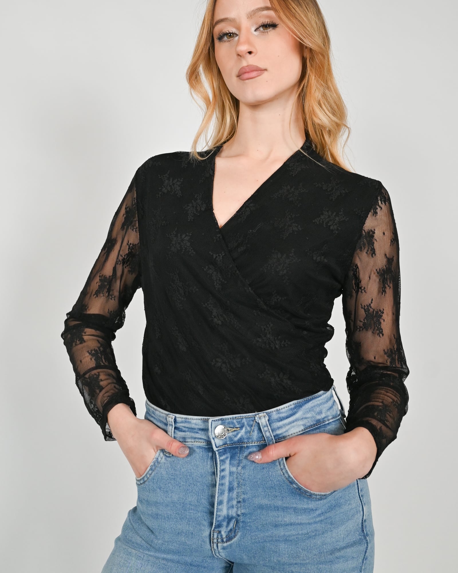 Top a maniche lunghe con scollo a cuore