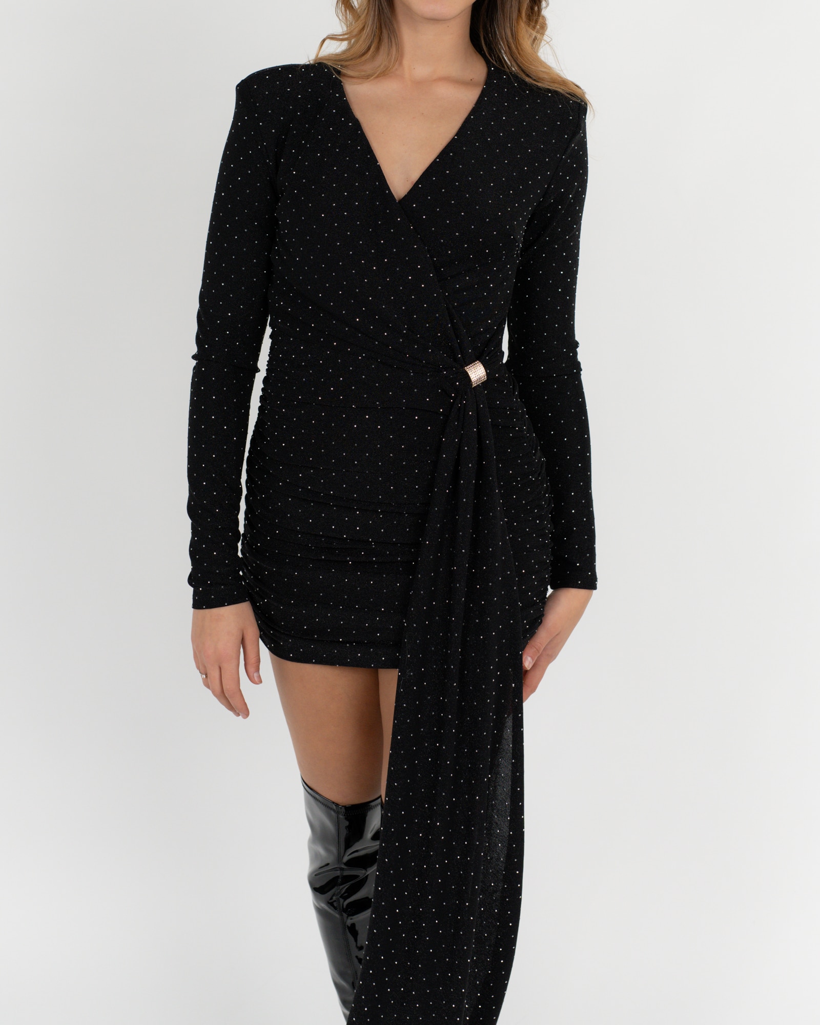 Vestito con strass e maniche lunghe.